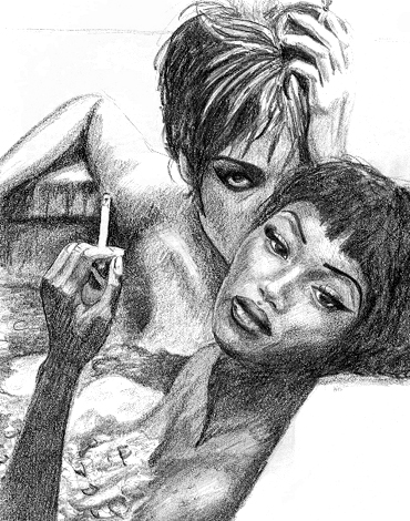 Linda & Naomi, Bleistift & Kohle auf Papier, 1996